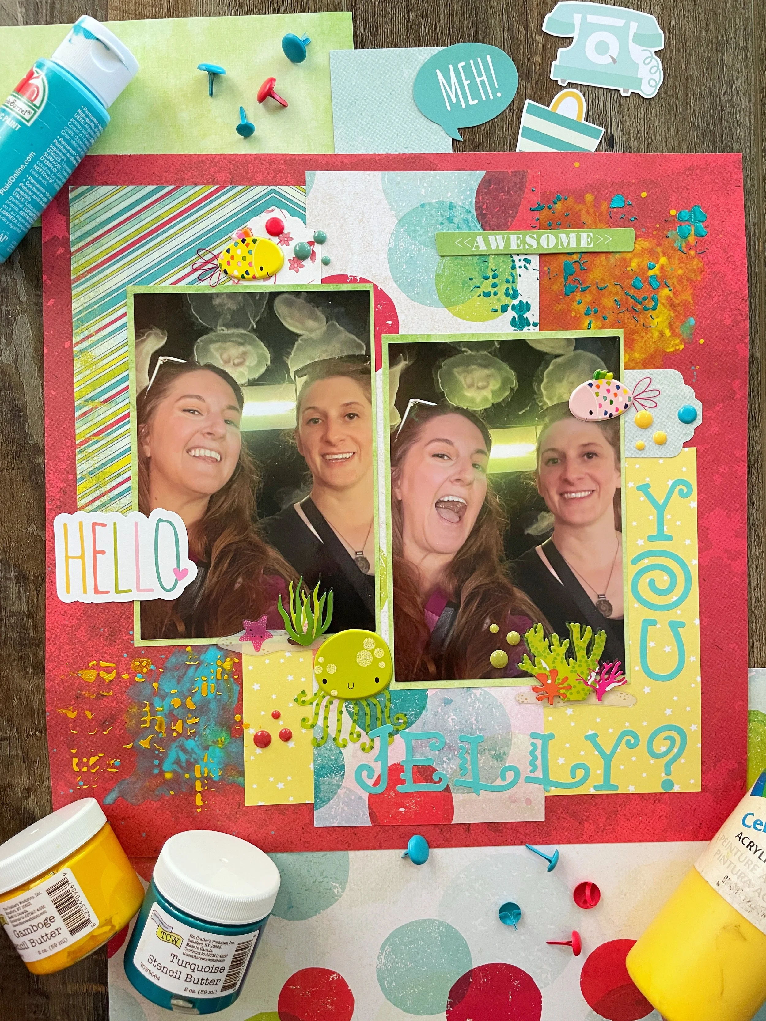 Hi scrappers! This week’s layout celebrates spring with lots of colors and florals. I used some photos taken last year when all the local hills were covered in yellow mustard flowers..