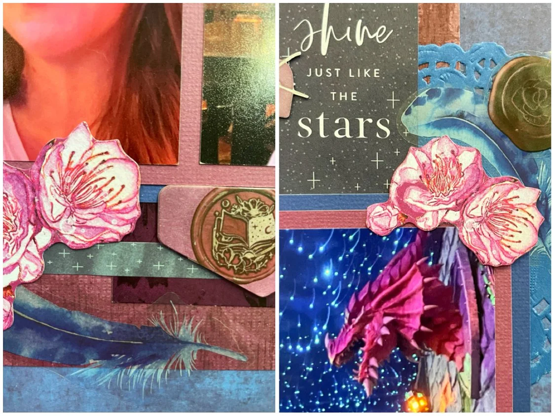This page was also made for the January Counterfeit Kit challenge where the inspiration kit this month just happened to be Curiosities in Willow Grove! It was the perfect opportunity to use the papers and laser cuts I owned that I hadn’t even cracked open yet! I added in other 49 and Market products that matched the vibe of the papers I’d chosen.