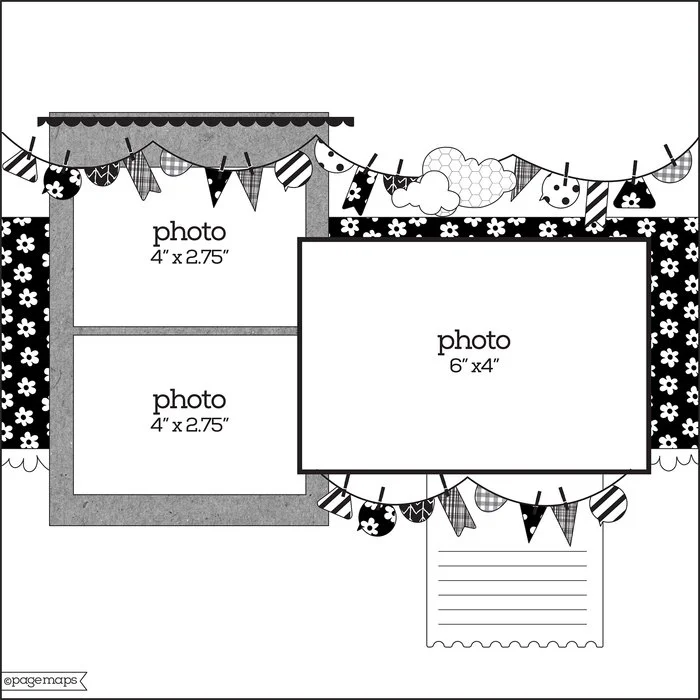 This page was made for the Cherry on Top Crafts Becky Fleck 290 challenge. I emulated the bunting that was shown in this sketch and placed my photos in a similar configuration. This sketch didn’t have a title so I added one in the lower right hand corner.